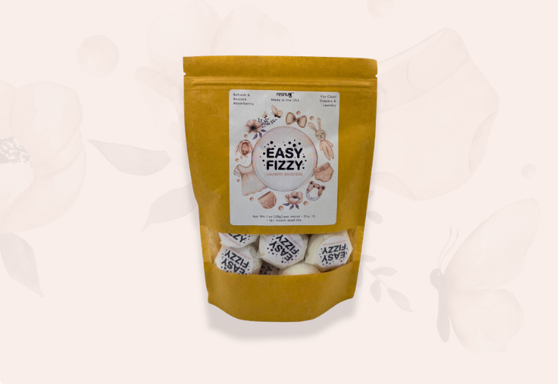 EasyFizzy™ simplifies cloth diaper laundry by combining common wash boosters into one easy-to-use tablet that helps break down buildup, support deep cleaning, and keep diapers fresh without complicated routines.
